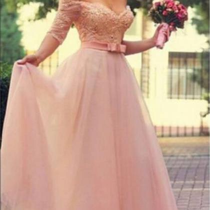 dresses dress evening pink shoulder gown ball appliques sleeve half luxury birthday costume