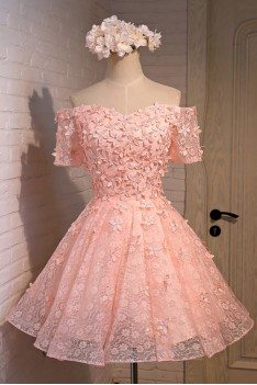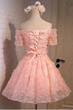 ezpopsy dress pink homecoming dresses lace short prom blush tulle sleeve sleeves shoulder line sexy robe graduation elbiseleri half elbiseler demoiselle