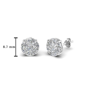 Square Invisible Diamond Stud Earrings in White Gold Finish